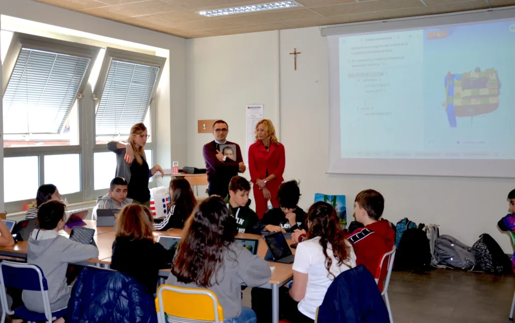 Dopo una breve “esperienza didattica esemplificativa” presso il Palazzo Marelli con gli allievi di una classe della Scuola Secondaria di Primo Grado, gli intervenuti si sono spostati presso lo Spazio Educativo Evoluto del Palazzo Schuster dove il professor Tommaso Franchini, Referente didattica ed educativo digitale delle OSDB, coadiuvato da alcuni allievi della Scuola Secondaria di Secondo Grado e del Centro di Formazione Cnos-Fap “Falck”, ha presentato il percorso svolto dagli studenti, dai formatori e dagli insegnanti.
