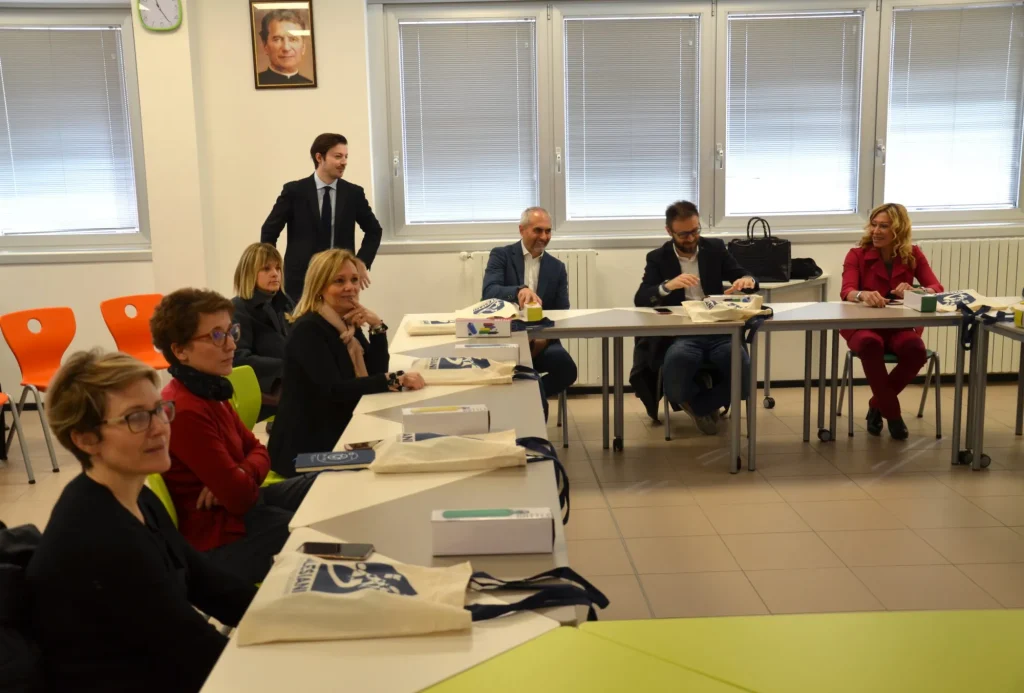 La consegna della targa è avvenuta presso il nostro istituto nella mattinata di giovedì 20 febbraio 2020, dove il nostro Direttore don Elio Cesari ha accolto i referenti nazionali di Apple Education insieme ai dirigenti scolastici don Stefano Mascazzini (Marelli), don Luigi Mapelli (Breda) e Francesco Cristinelli (cfp). Alla tavola rotonda che ha seguito la cerimonia sono intervenute figure significative del mondo istituzionale e scolastico, nazionale e territoriale: