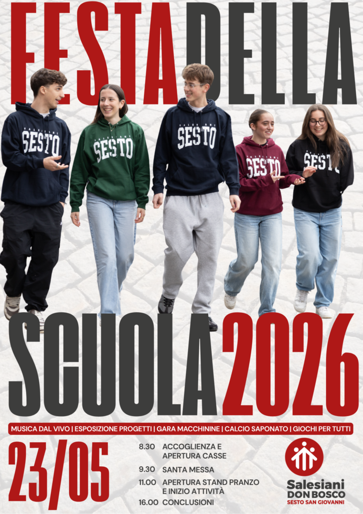 Siamo felici di invitare tutti gli studenti, le famiglie, il personale, gli ex allievi, gli amici della nostra Opera alla Festa della Scuola che si terrà sabato 23 maggio 2026.