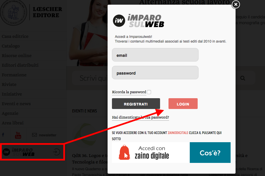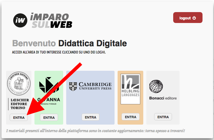 Dopo l’accesso è necessario selezionare l’editore di riferimento. In questo caso LOESCHER.