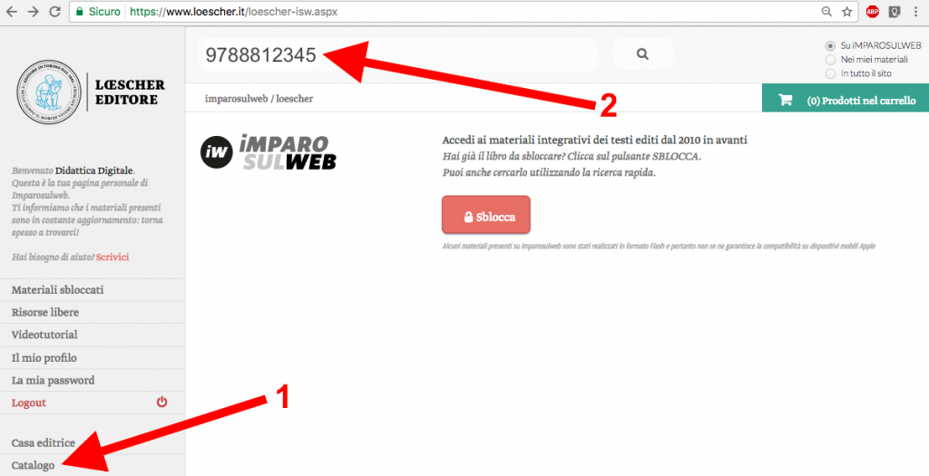 Per poter ricercare correttamente il libro desiderato è necessario visitare la sezione “Catalogo” del menù laterale.