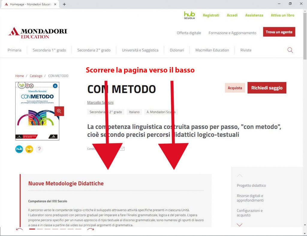 Per raggiungere la zona dove si trovano le diverse versioni del libro scelto è necessario scorrere verso il basso della pagina.